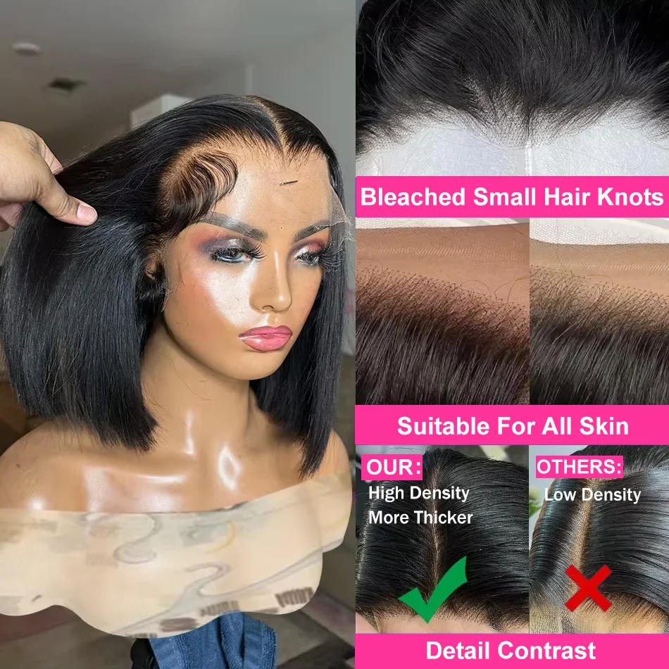 250% Bon Prix Perruque avec Bonne Qualité Perruque BOB Courte Perruque Raw Hair Sans Colle Perruque 13x6 13x4 Transparent Lace Perruque Naturelle Moins Cher Perruque Femme Perruque Livraison 3 Jours France Naturelle