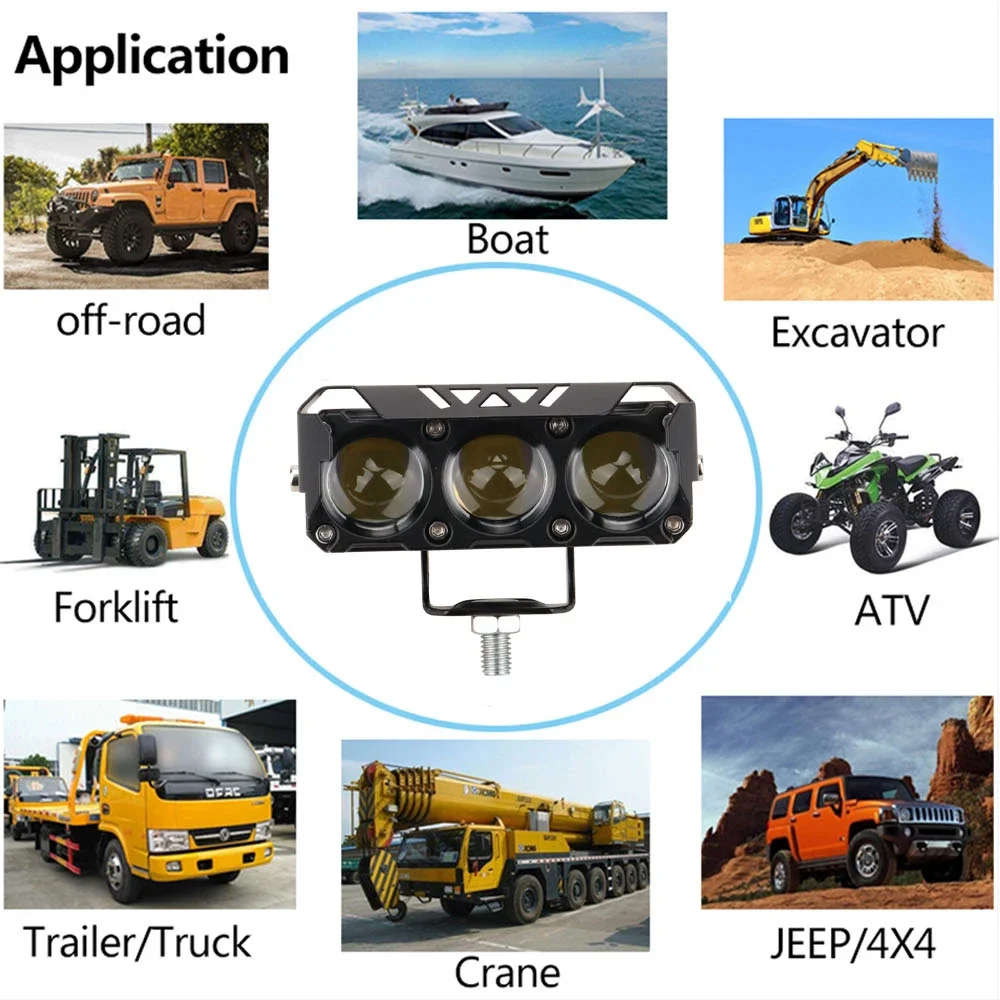 3 lentilles Super lumière brillante phares de Moto lentille led projecteur Moto antibrouillard Moto feux de route et de croisement lumière de travail Scooters